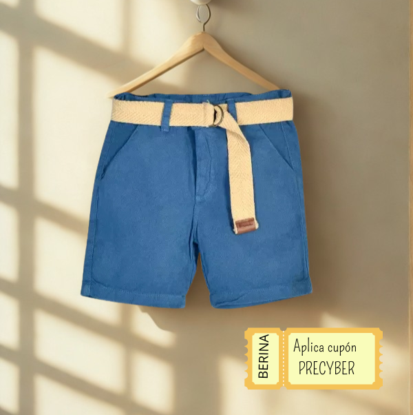 Bermuda corte clasico de gabardina, incluye cinturón regulable tejido, una prenda formal, linda y muy versatil.